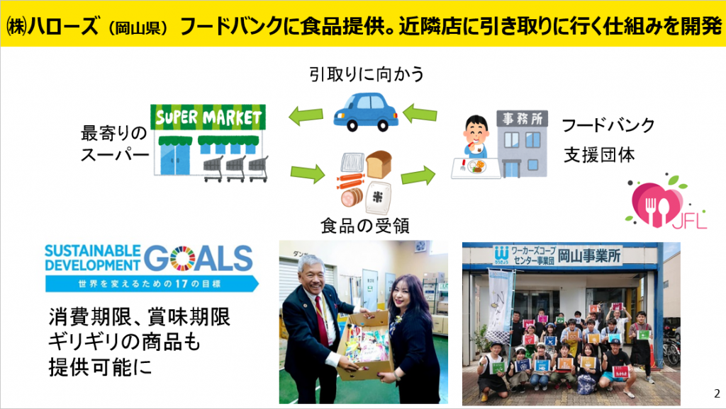 JFL加盟スーパーの(株)ハローズ様(本部:岡山県早島町)の提唱する店舗直接提供型フードバンク「ハローズモデル」が、2019年12月4日に徳島県で開催される内閣府主催の「子供の未来応援フォーラム」にて事例発表されます。